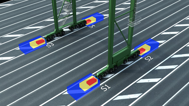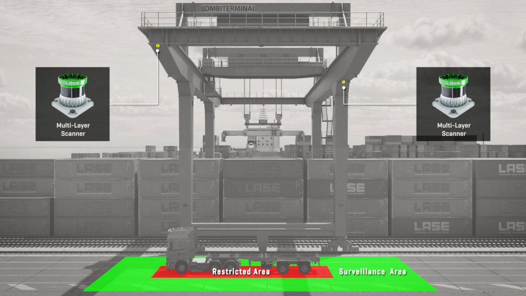 Zum Einsatz kommen in diesem System mindestens zwei Mehrlagenlaserscanner, die zum Beispiel am Containerkran über dem Übergabebereich von Kran auf LKW montiert sind. Diese scannen den Übergabe- oder „Überwachungsbereich“. Die gemessenen 3D-Punktwolken, also Scandaten beider Sensoren, ergeben eine Darstellung des Szenarios im Überwachungsbereich unter dem Kran.